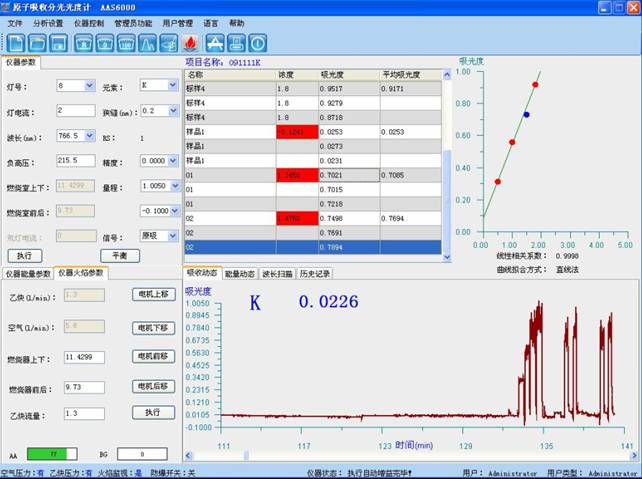 样板检验:于分子发送光谱图仪吸光度766.5nm处,充分利用文化氛围-乙炔燃烧的火焰,以水调零,勘界试液的吸光度,减去伴同试料的空白试稀硫酸的吸光度,从钓鱼任务曲线上直播杳出为了响应的钾氨水浓度。