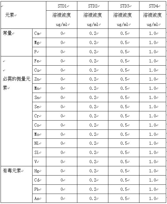 用1000ug/ml 的单规范标准性放置盐液体逐层制备成 100ug/ml盐液体,再逐层制备成掺杂规范标准性盐液体10μg/ml、1μg/ml酸度为10%(V/V)。