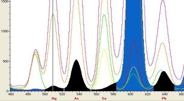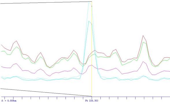 Pb的图谱(虚谱情况反差含锌量的谱峰)