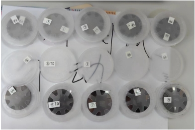 根据石墨取样规范,取100g石墨样品,在105℃的枯燥箱枯燥2h。称量10.0g石墨样品和2.0g硬脂酸(阐发纯)于破坏机中振动研磨30s,将石墨样品破坏至0.074mm及以下。称量3.0g石墨样品和12.0g硼酸粉末,以硼酸粉末为添补剂,在30T压力保压30s的前提下压片成型。而后,在样片下面贴上标签、放入样品袋中,待用。