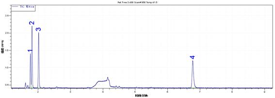 测定体例:TIC(FULL SCAN)定性(扫描规模:45-180amu),SIM形式定量。