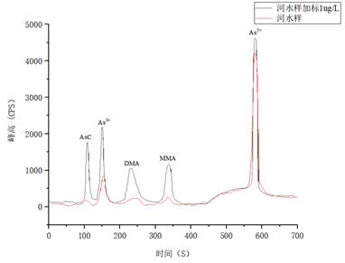 江水仿品及加标1µg/L的测试英文重大成就详情表4,仿品及加标后砷图形附加谱图长为5如图是。
